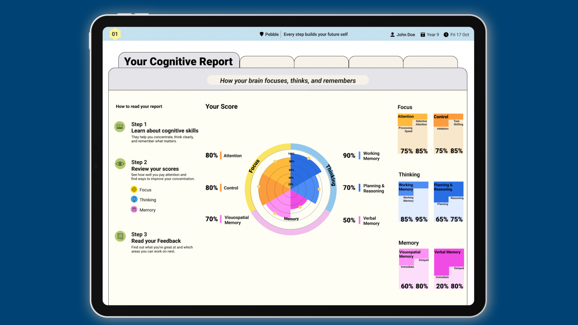Teachers receive clear cognitive profiles and actionable insights to support student learning.